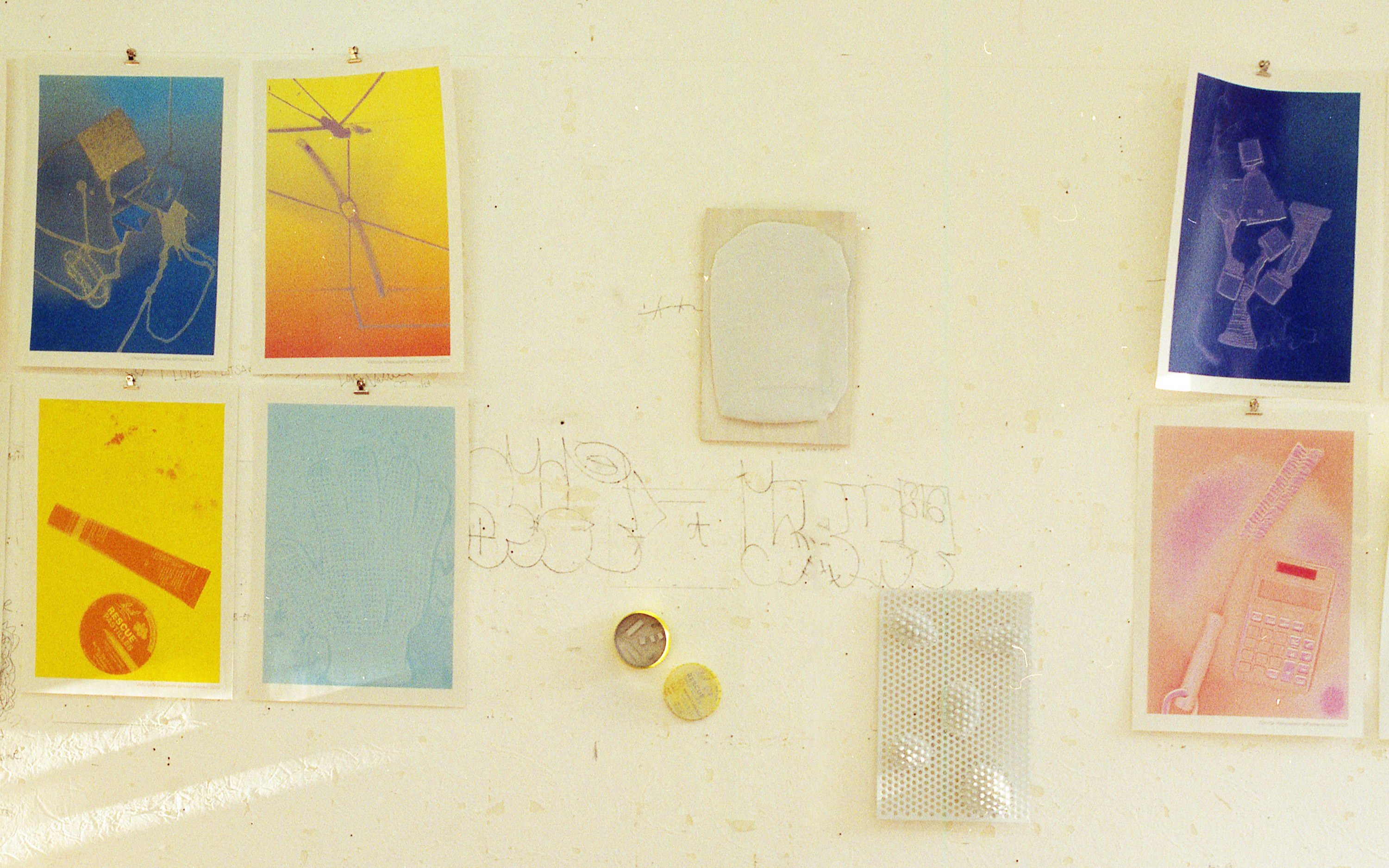 "Breadmaking" (in Japanese kiji-zukuri) refers to texture, fabric, routine—the daily labor of making a living. Surrounding the sticky business of "breadmaking," Viktorija transforms office supplies and everyday objects found in the workplace into photocopier prints and three-dimensional objects.
